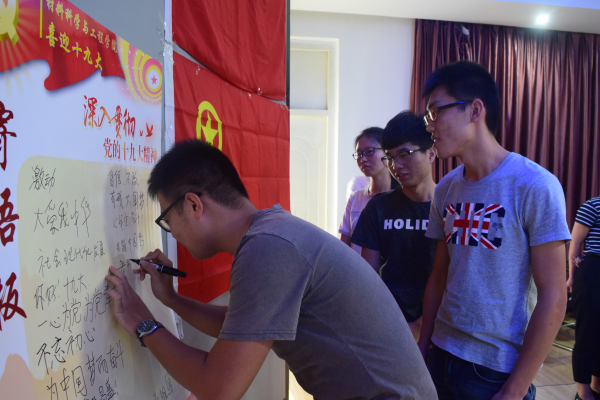 习近平总书记的报告让青年学子们倍感振奋。来自15级机械制造(卓越)班的学生党员俞翔宇同学说:“习总书记在报告中提到,中华民族伟大复兴的中国梦终将在一代代青年的接力奋斗中变为现实。当代大学生肩负神圣使命,我们一定谨记习总书记的殷切期望,勇于追梦,在实现中国梦的生动实践中放飞自己的青春梦想”。来自14级信管班的郑帅同学说,“时代的责任赋予我们青年,时代的光荣我们也与有荣焉。在习总书记的激励和关心下,我们有更好的平台和机遇,有更光荣的责任和使命,我也会用更高昂的干劲投身到祖国的建设中去,把自己的发展与国家的前途命运紧密结合在一起,用青春梦激昂中国梦!”(宣传部、各学院)