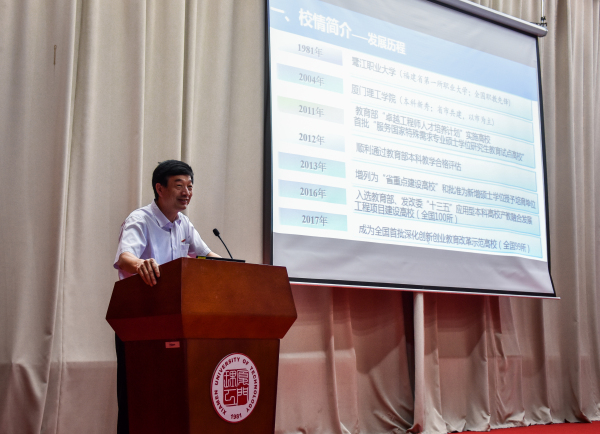 见面会上,厦门大学教育研究院副院长别敦荣教授介绍了本次调研的目的和主题。他提到,重视实践、重视应用是当代人才培养最重要的主题,“应用型”不仅是乐动网页版发展建设的方向,也是厦门大学在高层次人才培养中高度重视的方向。接下来的三天,调研团队将围绕“亲产业办学模式”、“创新创业教育”、“服务特需培养计划”三个主题进行调研和学习,他相信在学校的全力支持下,调研团将对乐动网页版的改革、发展、建设有更深入的认识。