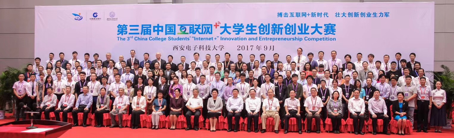 第三届中国“互联网+”大学生创新创业大赛由教育部、中央网络安全和信息化领导小组办公室、国家发展和改革委员会、工业和信息化部、人力资源和社会保障部、国家知识产权局、中国科学院、中国工程院、共青团中央和陕西省政府共同主办,西安电子科技大学承办。大赛堪称全国最大规模的大学生双创大赛,共吸引了全国2241所高校,总计37万个项目,超过150万人参加,还吸引了美、加、英、日、澳等25个国家和地区的116个大学团队报名参赛,共评出43个金奖项目。