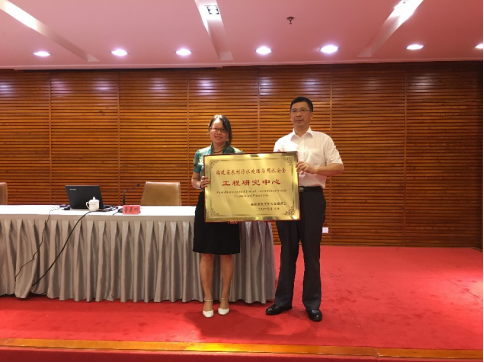 我校环境科学与工程学院副院长、工程研究中心副主任傅海燕教授(左)作为代表,
