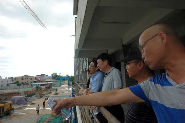 检查七号教学楼在建工地防台工作
