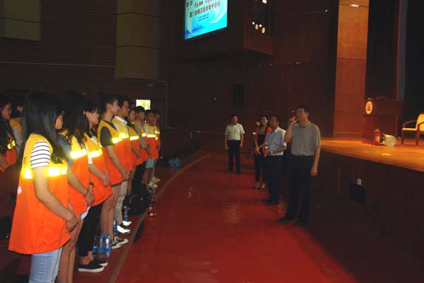 陈文哲校长看望参加培训的厦门会晤志愿者,叮嘱他们做好台风期间的安全防范