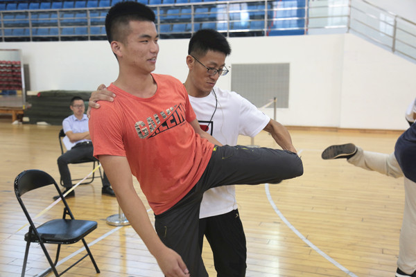此次培训分为礼仪培训和体能训练两个部分。数字创意与文化传播学院李钰老师对志愿者们进行礼仪培训,从站姿、坐姿、递物规则、握手方式、迎客待客用语等方面详细讲解了国际会议志愿者礼仪规范,并现场带领志愿者进行实操训练,提升志愿者的礼仪专业水平和服务技能。在当天下午进行的体能训练中,志愿者们接受了长跑等基本体能训练,并在体育部陈亮老师的带领下进行专项体能格斗基本功训练。