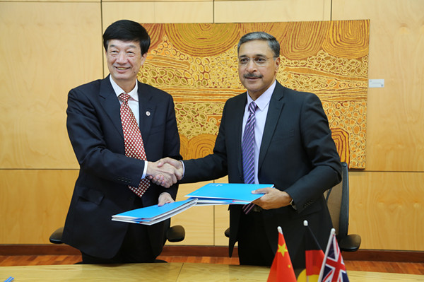 访问澳大利亚堪培拉大学期间,陈文哲校长与该校Deep Saini校长、李荣宇副校长等进行了一系列会谈,并共同签订了土木工程、商务英语等学科领域的校际人才联合培养协议。双方就办学理念与治校方针、教师交流与科研合作、课程对接与学分互认等一系列问题进行了充分的交流。陈文哲校长还与澳方Deep Saini校长一起,看望在该校学习的我校学生代表。