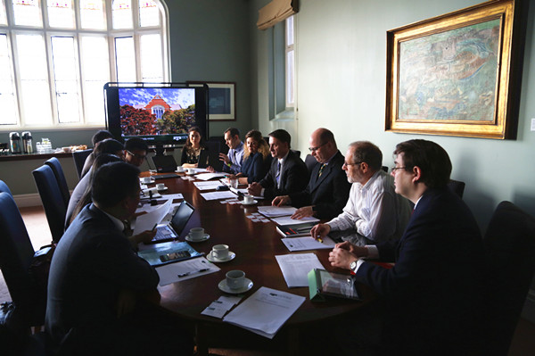 近期,陈文哲校长率团访问了澳大利亚堪培拉大学、悉尼大学、悉尼科技大学、新西兰惠灵顿维多利亚大学等5所高校。访问新西兰惠灵顿维多利亚大学期间,双方校领导举行了富有成效的会谈,并签订了两校硕士直录项目合作协议。双方将对两校共同举办的电子信息工程专业中外合作办学项目加强支持力度;切实鼓励两校教师之间的学术与科研合作,联合开展一系列教师培训交流项目。此外,双方代表一同召开了电子信息工程专业中外合作办学项目的管理委员会会议和学术委员会会议,就该项目举办实施过程中的重大事项和发展计划等问题进行了讨论。在会谈之余,陈文哲校长还看望了正在惠灵顿维多利亚大学交流学习或访问进修的我校师生代表,并与其热切座谈。