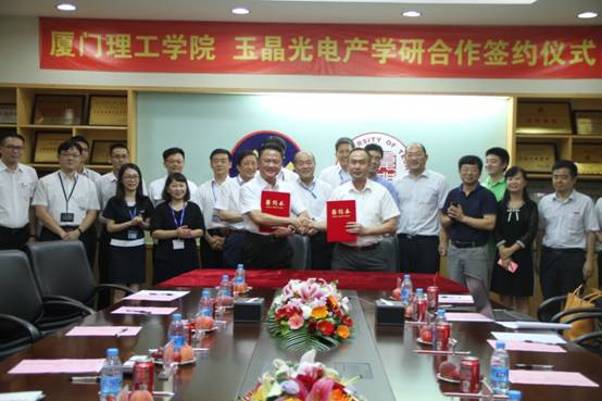 7月7日下午,我校与玉晶光电产学研战略合作协议签约仪式在厦门火炬高新区玉晶科技大厦举行,校党委黄如欣书记、吴克寿副校长及产学融合发展处、教务处、机械与汽车工程学院、光电与通讯工程(微电子)学院、土木工程与建筑学院、材料科学与工程学院等相关部门和学院负责人参加了签约仪式。玉晶光电董事长陈天庆在致辞中表示,我校在培养专业人才、科学研究和服务产业企业方面具有自己的特色和优势,希望我校能为玉晶光电输送光电、机械自动化等领域的人才生力军,希望双方在更密切的沟通和互动中强强联合,相互促进,共同发展。