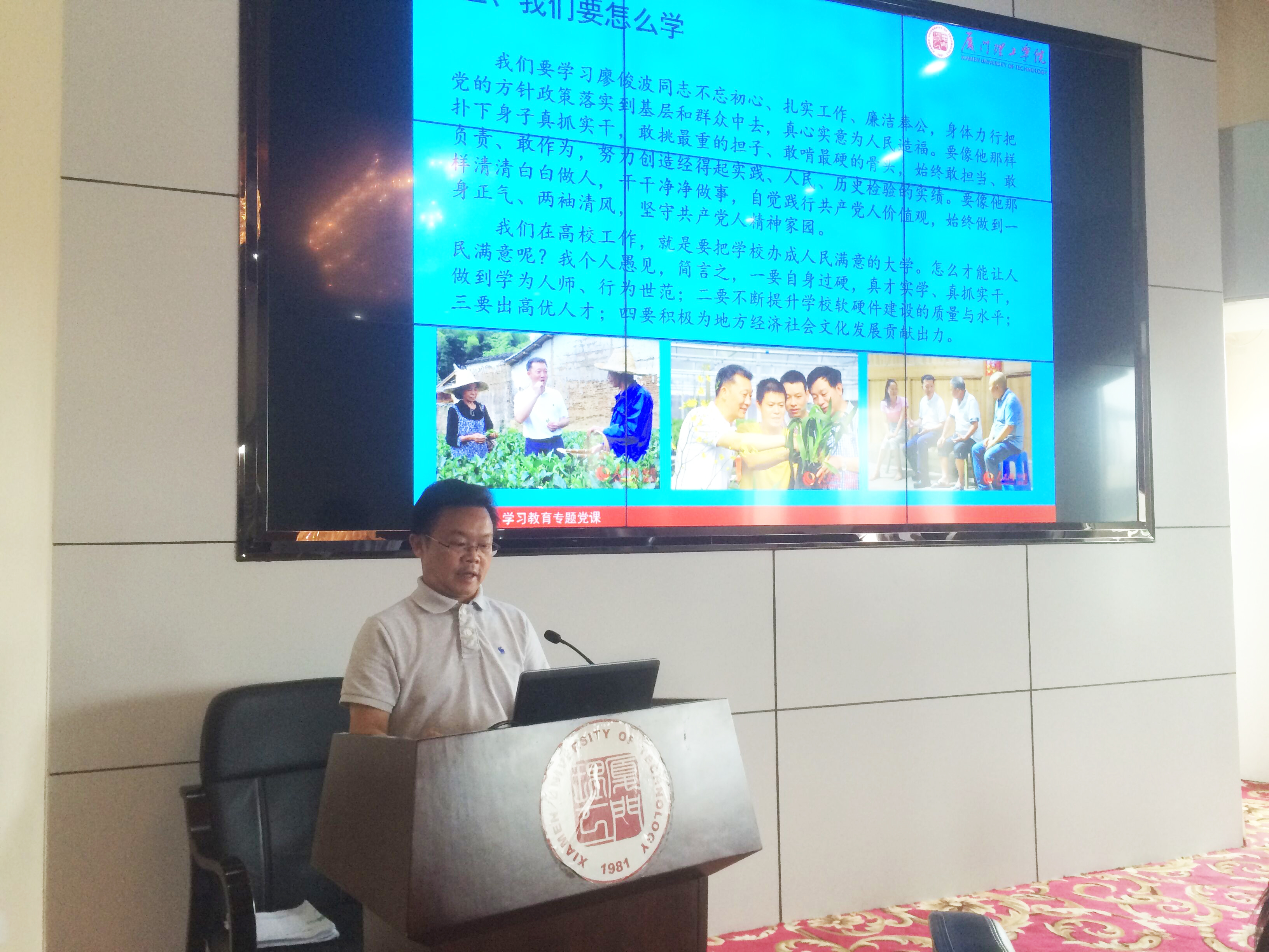 机关第四党支部所在的基建处、财资处、后勤处党员干部和重要岗位人员,资产公司党员干部参加了听讲。大家表示,尤副校长的党课深入浅出,紧扣工作实际,使大家思想上受到了一次深刻教育,触动很大,对今后如何更好地学习廖俊波精神,更好地履职尽责也有了更清晰而坚定的认识。(机关第四党支部)