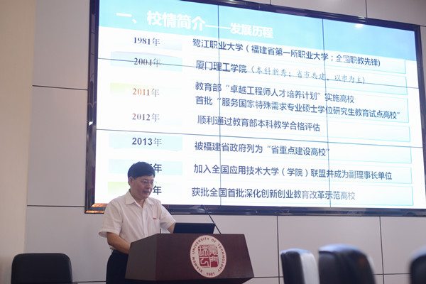 陈文哲校长代表学校对专家组的到来表示欢迎和感谢,并简要介绍了学校概况及电气工程及其自动化专业发展情况。陈校长表示,学校高度重视并大力推进专业认证工作,此前已经有5个专业通过或接受了相关机构专业认证,目前有4个专业成功受理参加2017年认证。学校将以此次电气工程及其自动化专业认证为契机,全面检验学校的专业建设管理,全面提升专业人才培养质量。他希望专家组对电气工程及其自动化专业建设进行全面的把脉诊断,对学校的学科专业建设和内涵发展多提宝贵的意见。