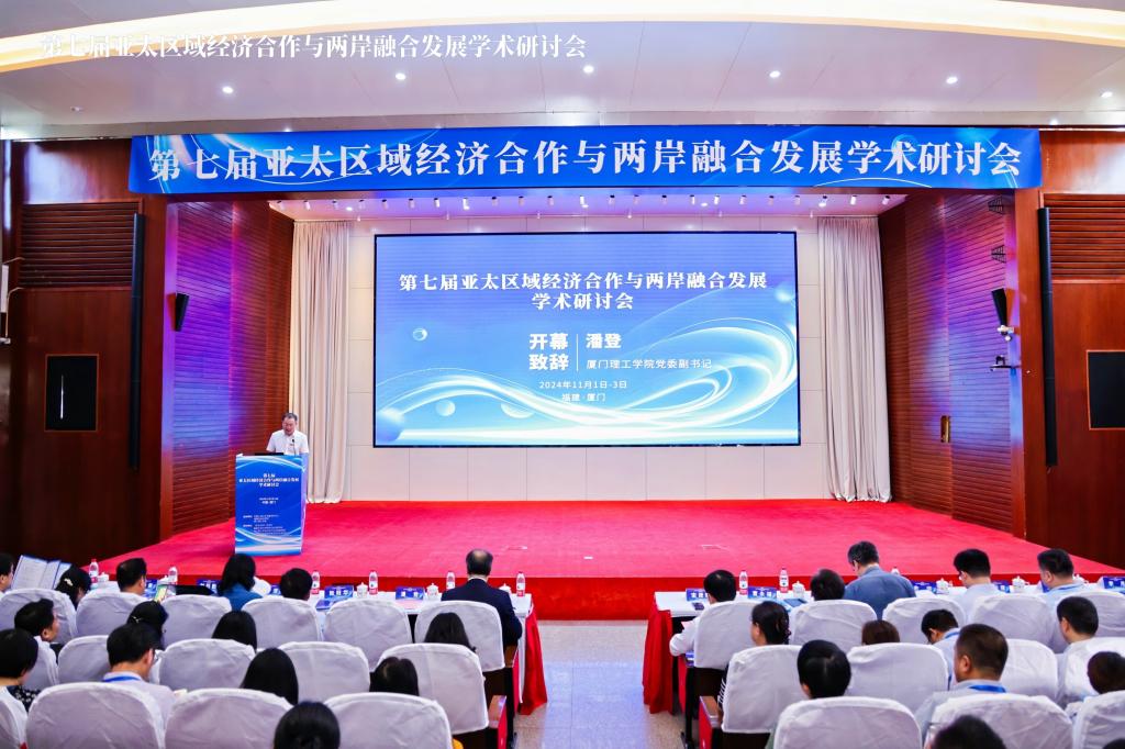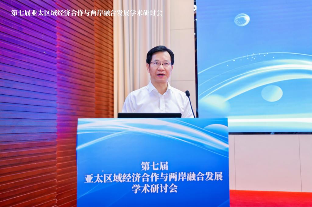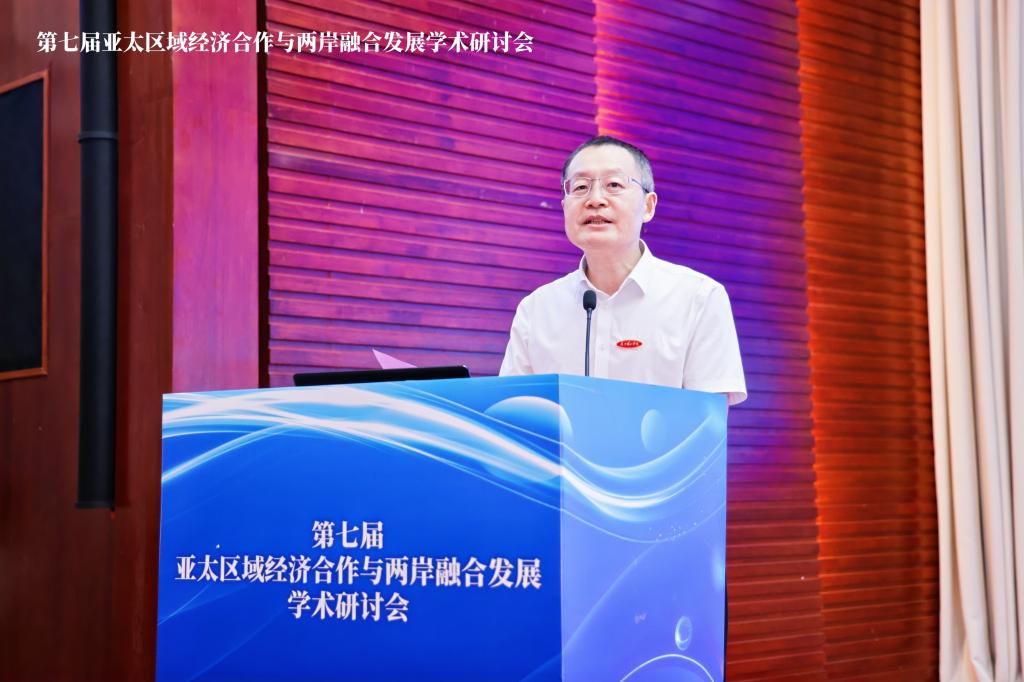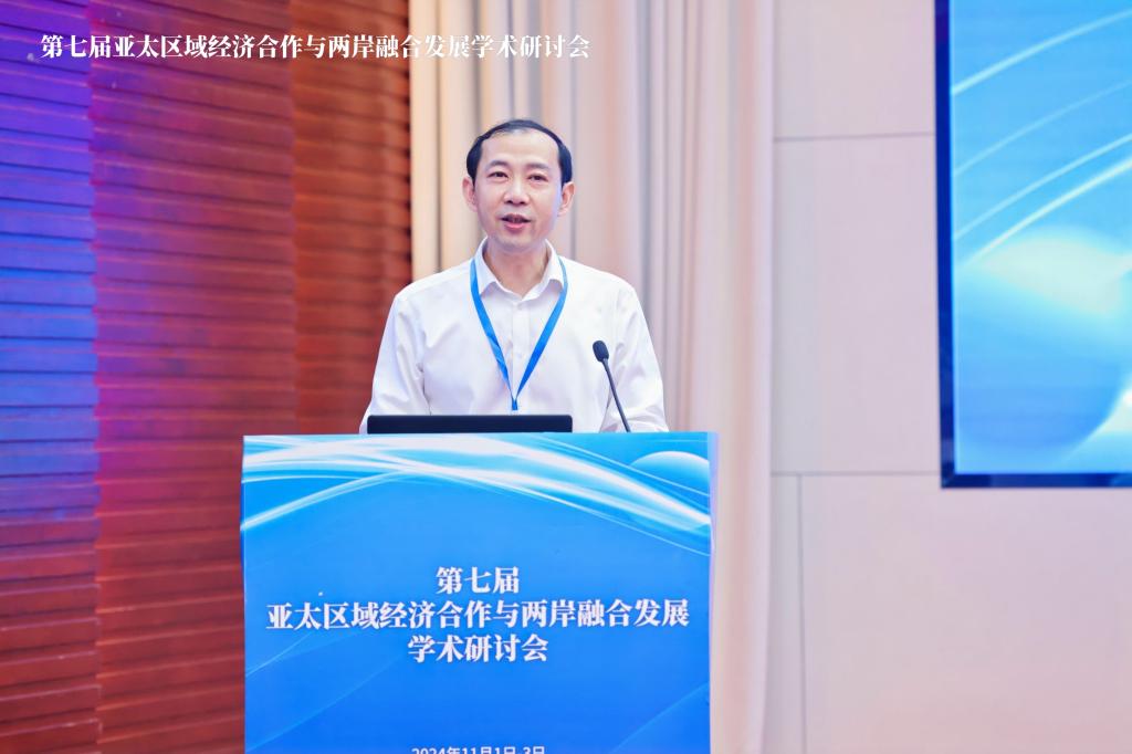 校党委副书记潘登代表学校致辞,对各位嘉宾的到来表示热烈欢迎。他简要介绍了我校基本情况,以及推进与亚太地区高校合作交流、深化两岸产教融合发展的实践与成果,并表示,在全国上下深入学习贯彻党的二十届三中全会精神的重要时刻,来自亚太经济和两岸融合发展领域的专家通过交流研讨,碰撞智慧火花,将为进一步深化亚太区域经济合作研究,为促进两岸融合发展贡献智慧力量。