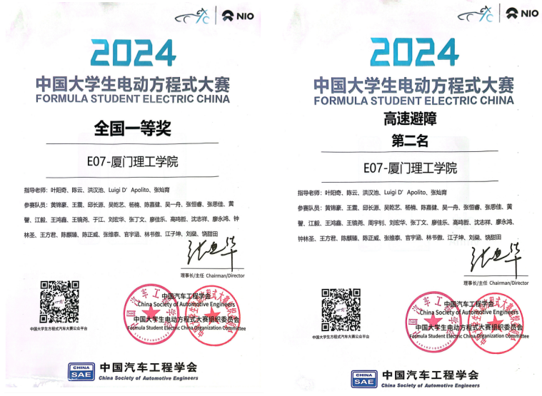 近日,2024“蔚来杯”中国大学生电动方程式汽车大赛(FSEC)在合肥成功举办,我校宏发AMOY赛车俱乐部在本次大赛中再获佳绩,以总分第四名成绩荣获全国一等奖,同时获高速避障第二名、优秀底盘设计奖、年度卓越宣传团队以及蔚来大奖——最佳经理人奖等多项荣誉。