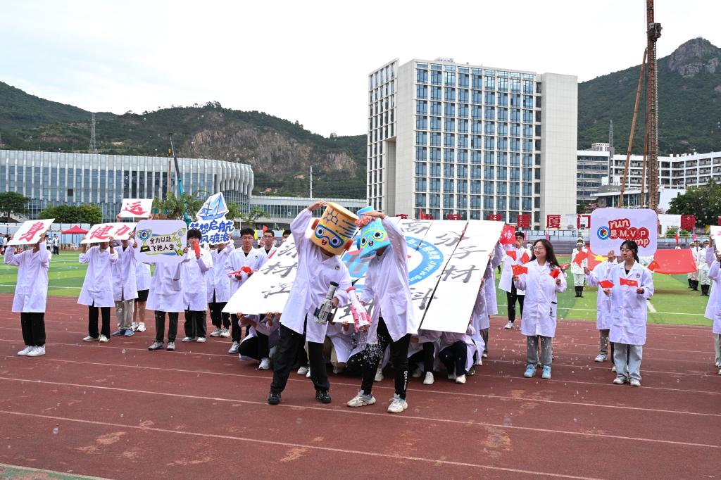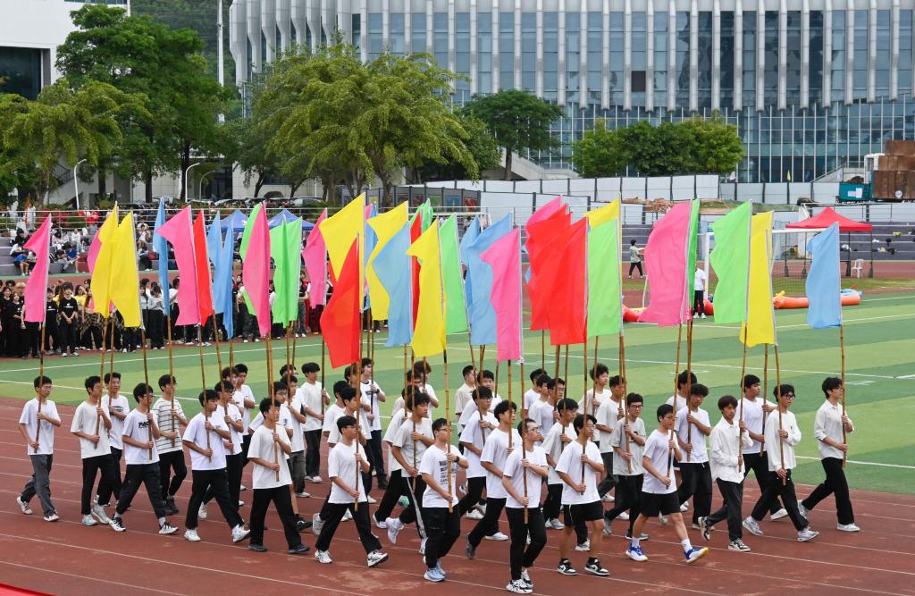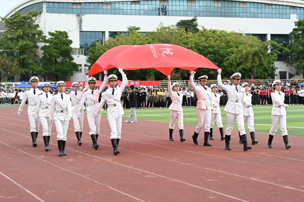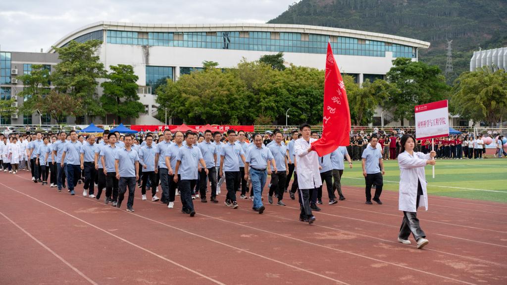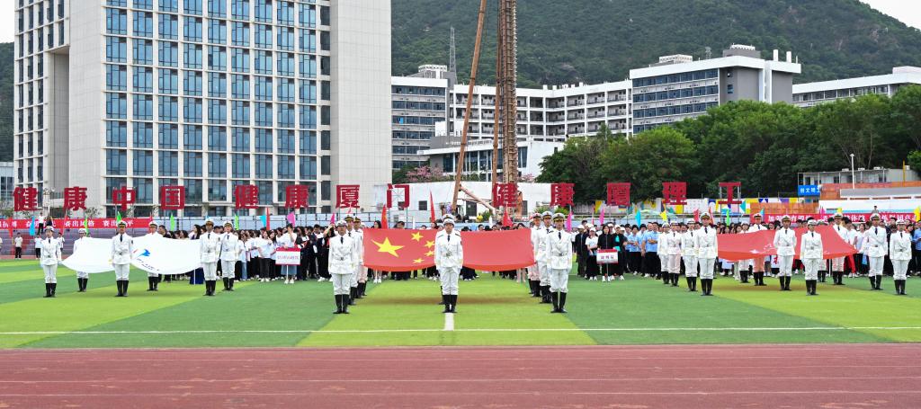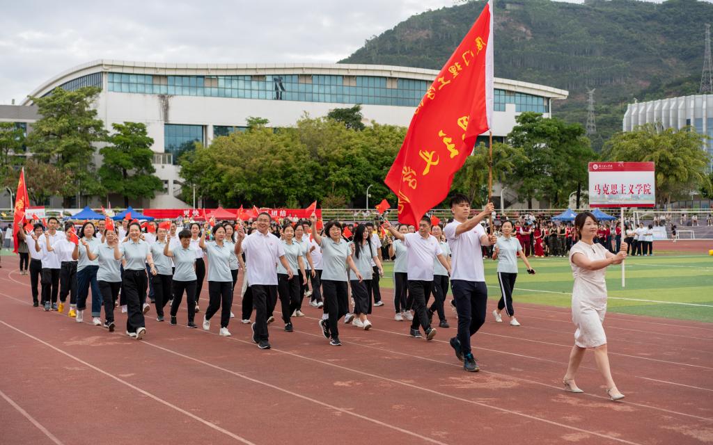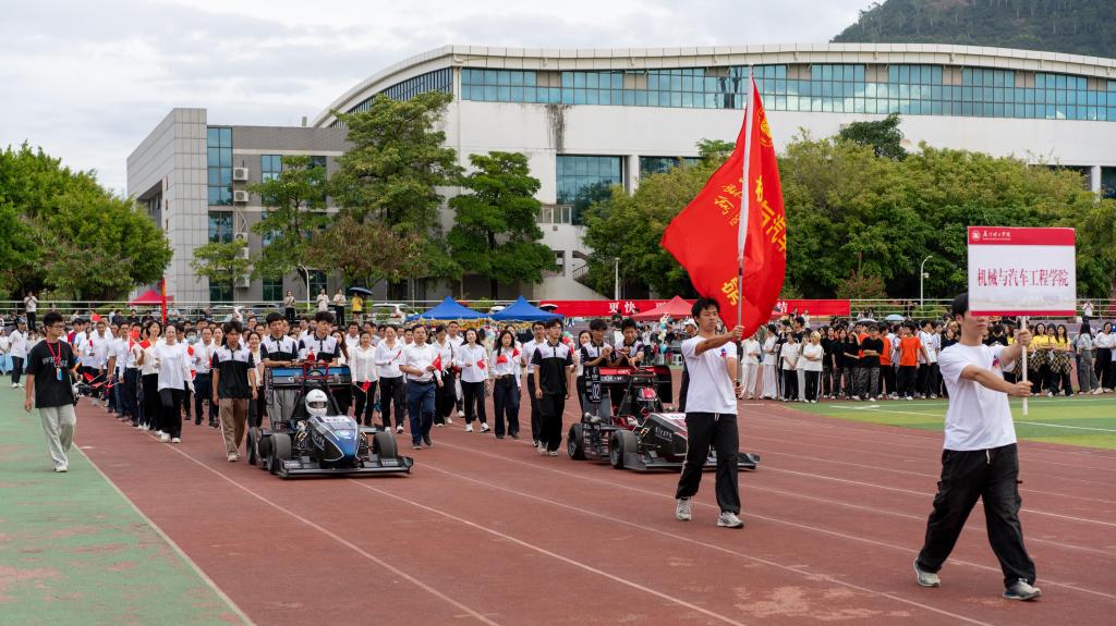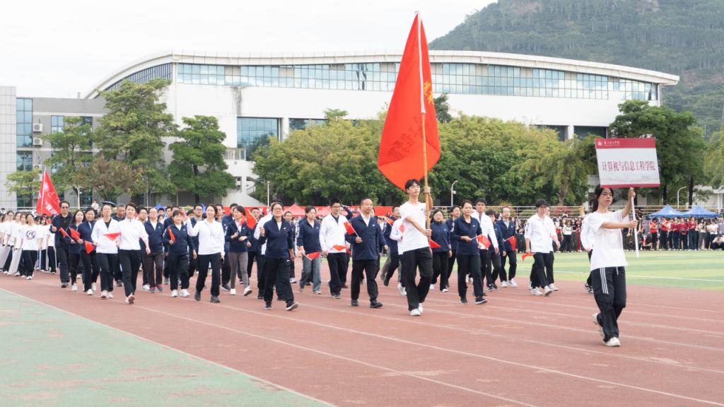 伴随着激昂的运动员进行曲,在国旗护卫队的引领下,校旗队、彩旗队、会徽队、裁判员代表队以及来自学校各单位19个师生代表方阵先后入场。他们精神抖擞、意气风发,迈着整齐的步伐,依次经过主席台接受检阅,展示了厦理工师生昂扬向上、拼搏进取的精神风貌。