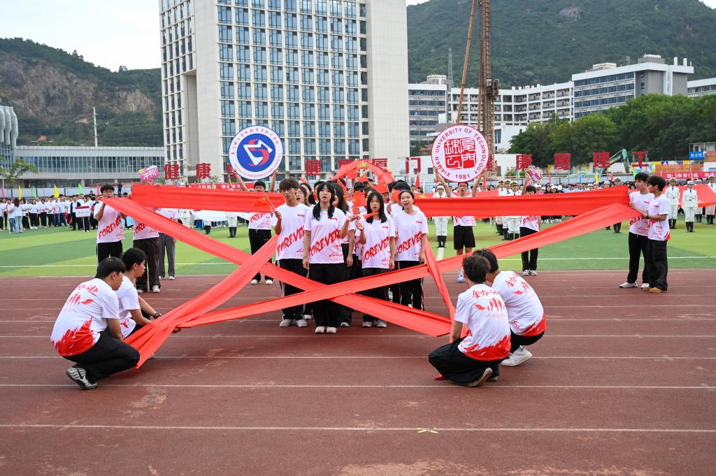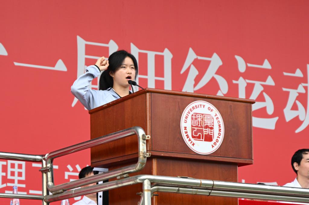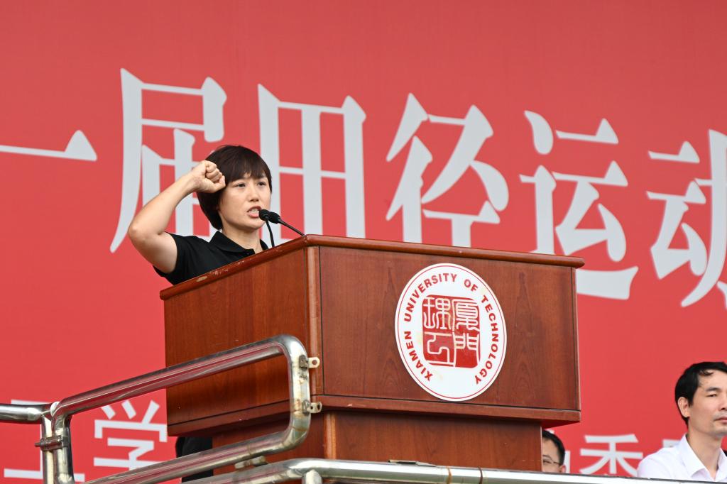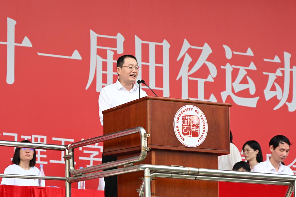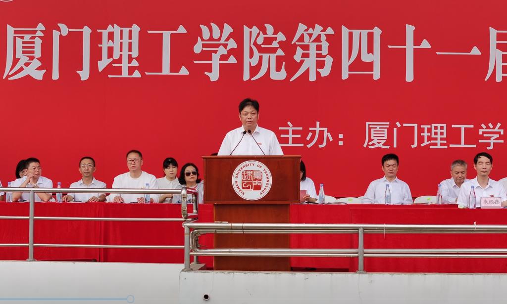 校党委副书记陈洪尧致开幕词,代表学校和大会组委会对本届运动会的举行表示热烈祝贺。他指出,学校认真贯彻落实习近平总书记关于体育强国建设、体育工作的重要指示精神,将体育作为落实立德树人根本任务的重要举措,组织实施“健康厦理工”校园体育文化建设工程,积极推进体育学科建设和教学改革,推动体育工作与教学科研事业同频共振,取得了丰硕的育人成果。陈副书记对我校师生在全国、省市各类体育竞赛中展现出顽强的拼搏精神和出色的竞技水平,以及取得的优异成绩表示祝贺与肯定,希望广大师生在学习工作中保持追求卓越、勇于超越的精神,实干当先、斗志昂扬,为早日把学校建成一流应用型大学而拼搏奋斗。