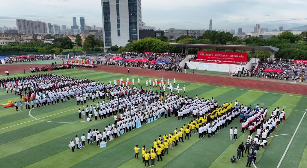 随后,由各二级学院学生代表组成的方阵带来了精彩的操舞表演。矫健的身姿、整齐欢快的动作,展现了厦理工学子的青春活力与蓬勃朝气,赢得了现场观众的阵阵喝彩。